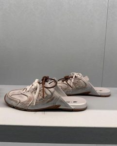 Loafers platform Miu Miu juga menjadi pusat perhatian. Dengan sol tebal dan bentuk maskulin yang kontras dengan styling feminin, sepatu ini menciptakan estetika “ugly-pretty” yang kini menjadi ciri khas generasi Gen Z. Banyak editor fashion menyebut bahwa sejak kemunculan koleksi tersebut, brand-brand lain langsung merilis versi serupa dalam waktu singkat.