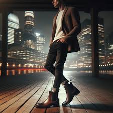 Untuk tampilan formal, leather Chelsea boots hitam polos sangat cocok dipadukan dengan setelan jas. Sepatu ini memberikan kesan elegan tanpa terkesan terlalu kaku. - Eksperimen Warna dan Tekstur